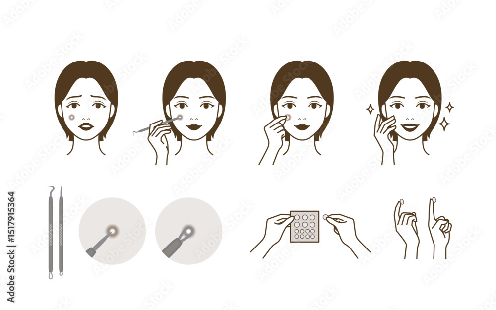 Fotografija A cute woman character who extracts and removes whitehead, zit, acne with pimple