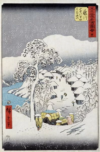 Characters under the snow, Japan - Japanese print by Hiroshige Utagawa - 19th century