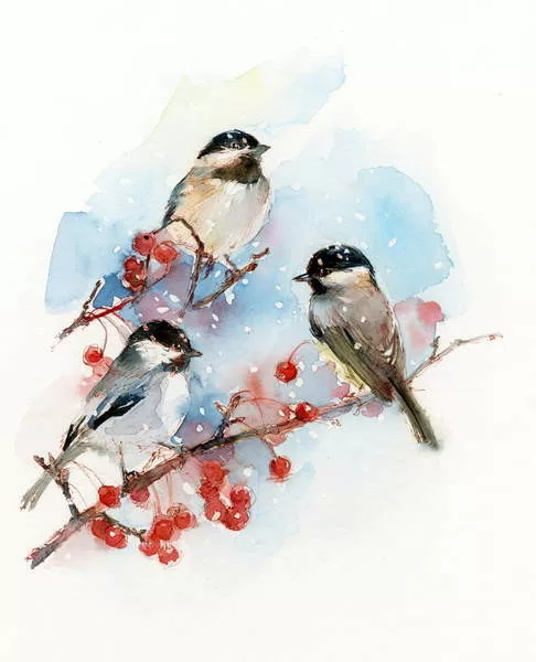 Poster Chickadees with Berries, 2017,