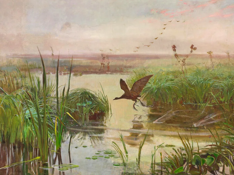 Poster Common Moorhen (Vintage Landscape with Birds / Pastel Fantasy) - Józef Chelmoński