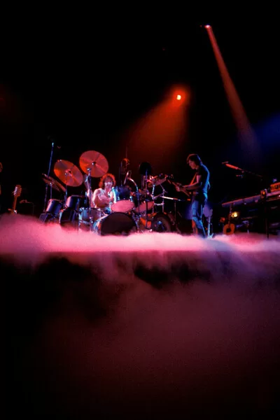 Poster February 1977: concert of rock band Pink Floyd at the Paris Pavilion: Nick Mason drummer and bassist Roger Waters.