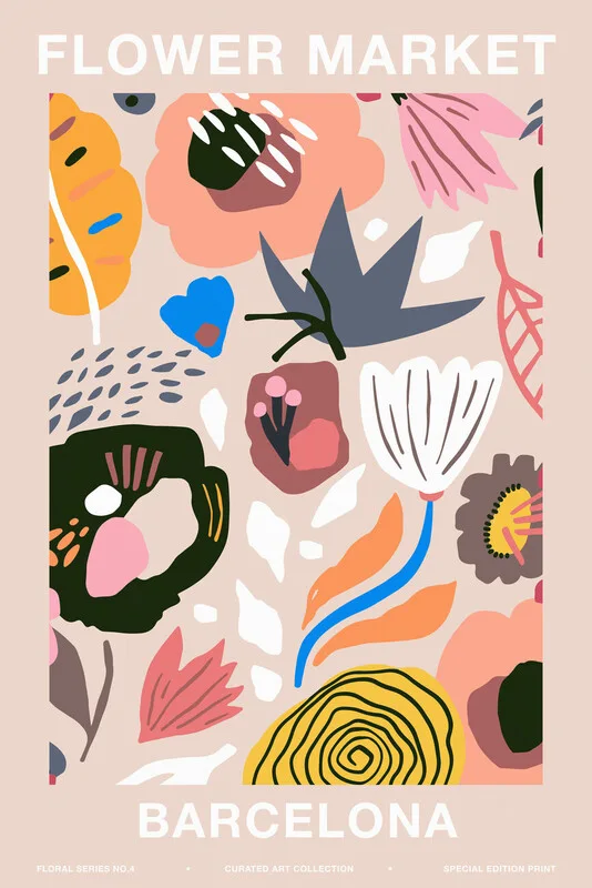 Poster Flower Market, Barcelona (Pretty Retro Floral Advert)