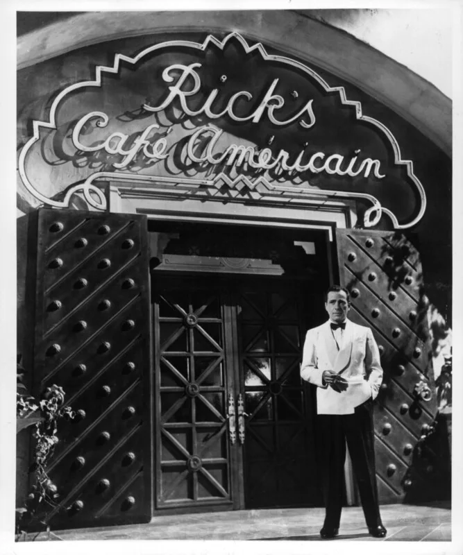 Humphrey Bogart stands outside Rick's Cafe in a scene from the film 'Casablanca', 1942. (Photo by Warner Brothers/Getty Images)