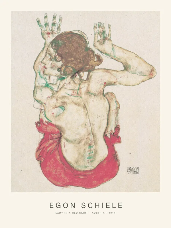 Poster Lady in a Red Skirt (Special Edition Female Nude) - Egon Schiele