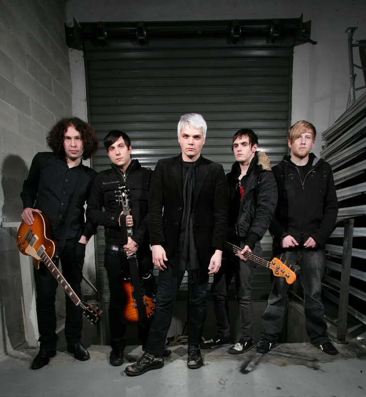 MILAN, ITALY - NOVEMBER 21: My Chemical Romance posed backstage in Milan on November 21 2006. L-R Ray Toro, Frank Iero,Gerard Way, Mikey Way, Bob Bryar (Photo by Mick Hutson/Redferns)