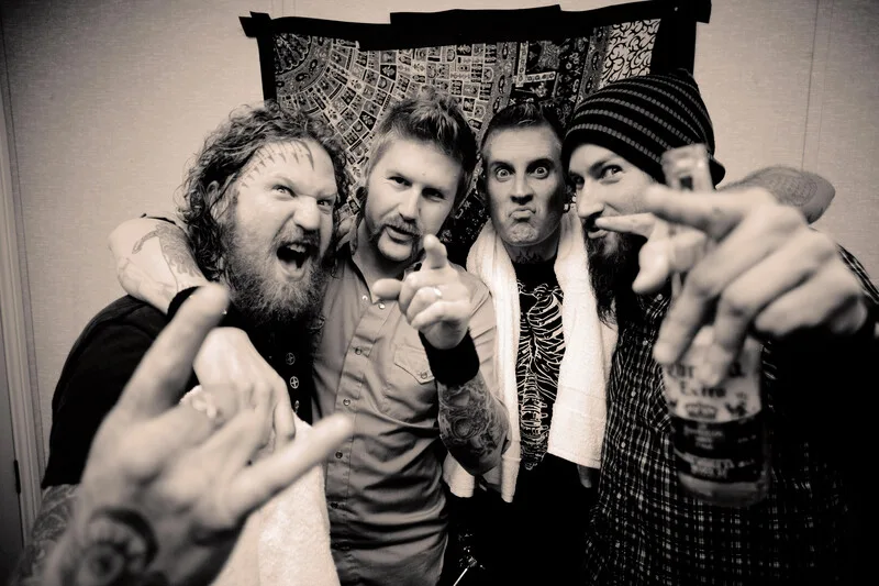 ATLANTA, GEORGIA - FEBRUARY 28: L-R Brent Hinds, Bill Kelliher, Brann Dailor and Troy Sanders of Mastodon pose backstage for a group portrait at the Masquerade during the Scion Rock Festival on February 28th, 2009 in Atlanta, United States. (Photo by Mick Hutson/Redferns)