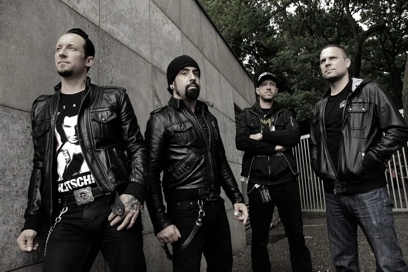Group portrait of Danish metal band Volbeat, Wuhlheide, Berlin, Germany, 31st May 2013. Line up includes: Michael Poulsen, Rob Caggiano, Anders Kjolholm, Jon Larsen. (Photo by Mick Hutson/Redferns)
