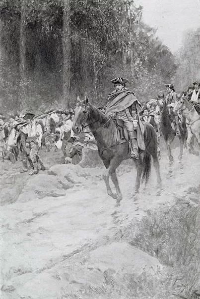 Washington's Retreat from Great Meadows, illustration from 'Colonel Washington' by Woodrow Wilson, pub. in Harper's Magazine, 1896
