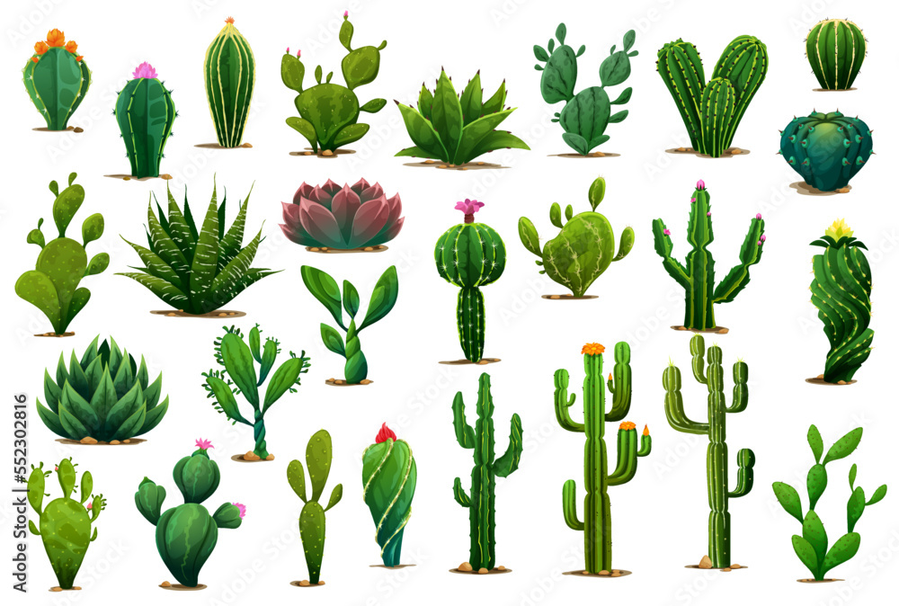 Fotografija Cartoon prickly succulent cactus plants and desert flowers