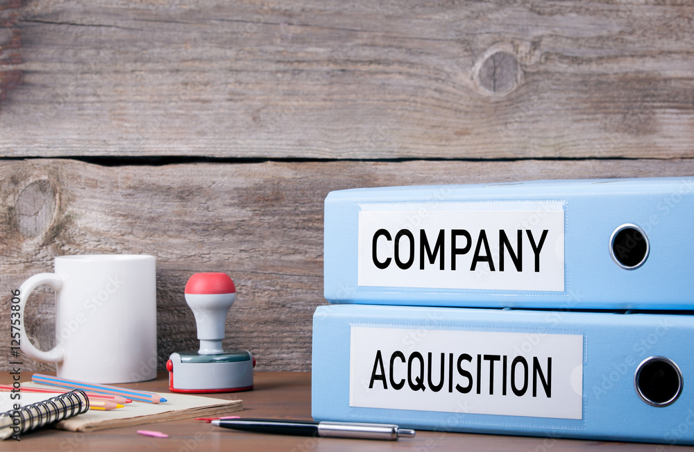 Slika na platnu Company and Acquisition. Two binders on desk in the office. Busi