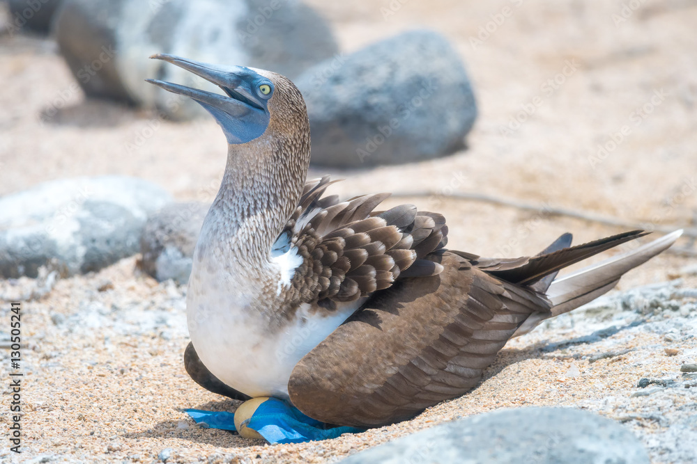 Tapeta Blue footed Booby (Sula nebouxii) sitting on nest in North Seymour Island, Galap
