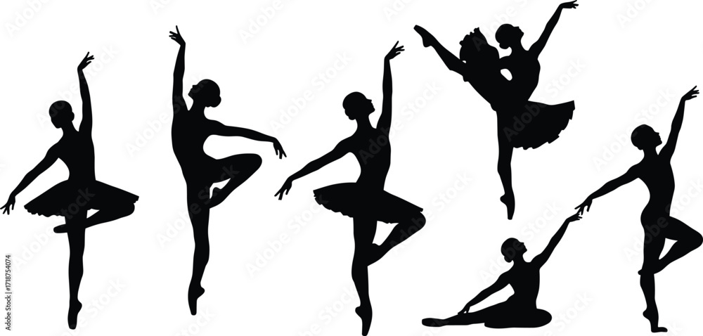 Tapeta Ballet dancer silhouettes, classical ballerina poses in elegant costumes, artist