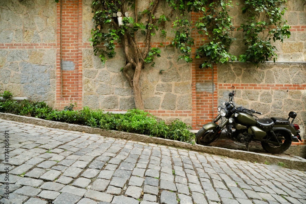 Tapeta old motorbike in the street