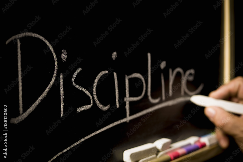 Tapeta The concept of discipline, the inscription on the background of the blackboard