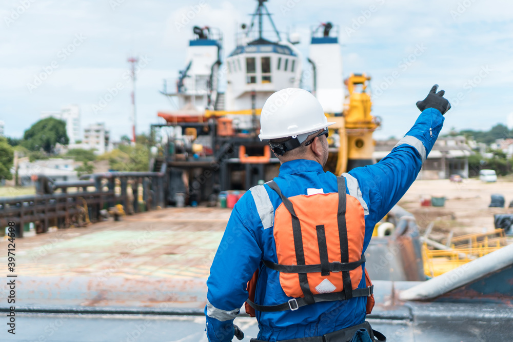 Tapeta Marine Deck Officer or seaman on deck of vessel or ship