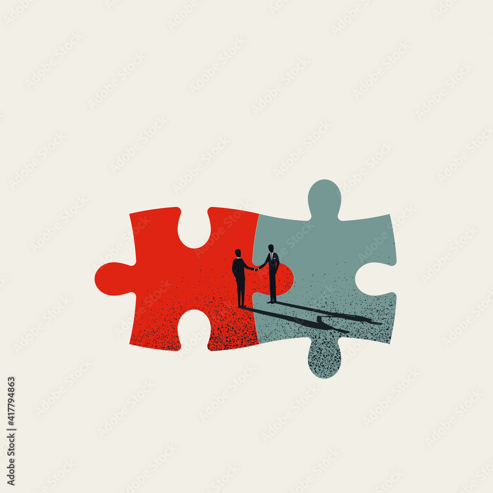 Tapeta Business merger and acquisition vector concept with businessmen shaking hands, end of negotiation, success