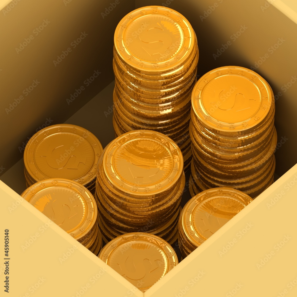Tapeta 3d box with golden coins