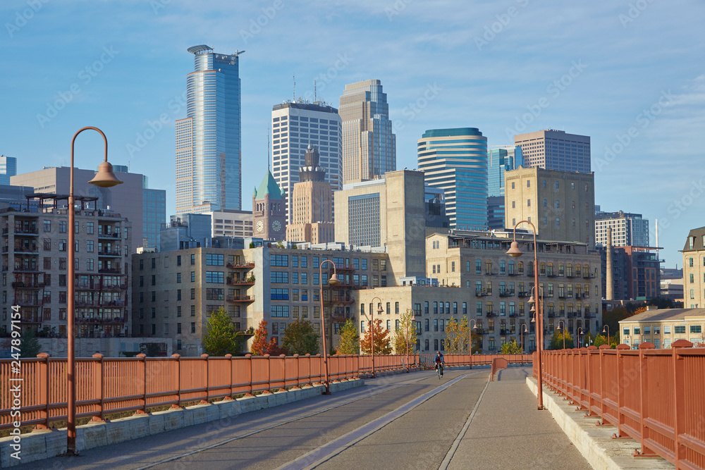 Fotografija Stone Arch Bridge with downtown Minneapolis Minnesota skyline in the background