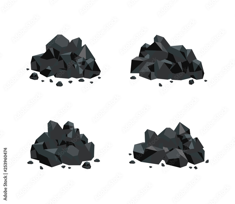 Fotografija Vector illustration set of various piles of black coal isolated on white background