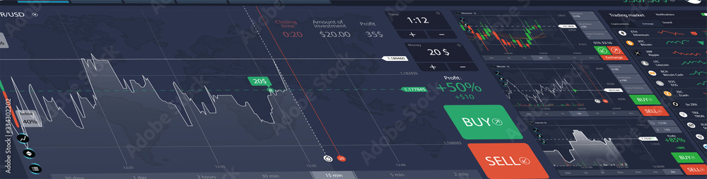 Fotografija Stock market perspective dashboard, trading platform binary option with cryptocurrency and other investments