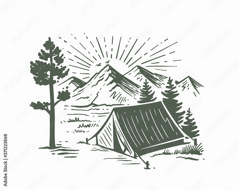 Fotografija tent camping in forest near mountains