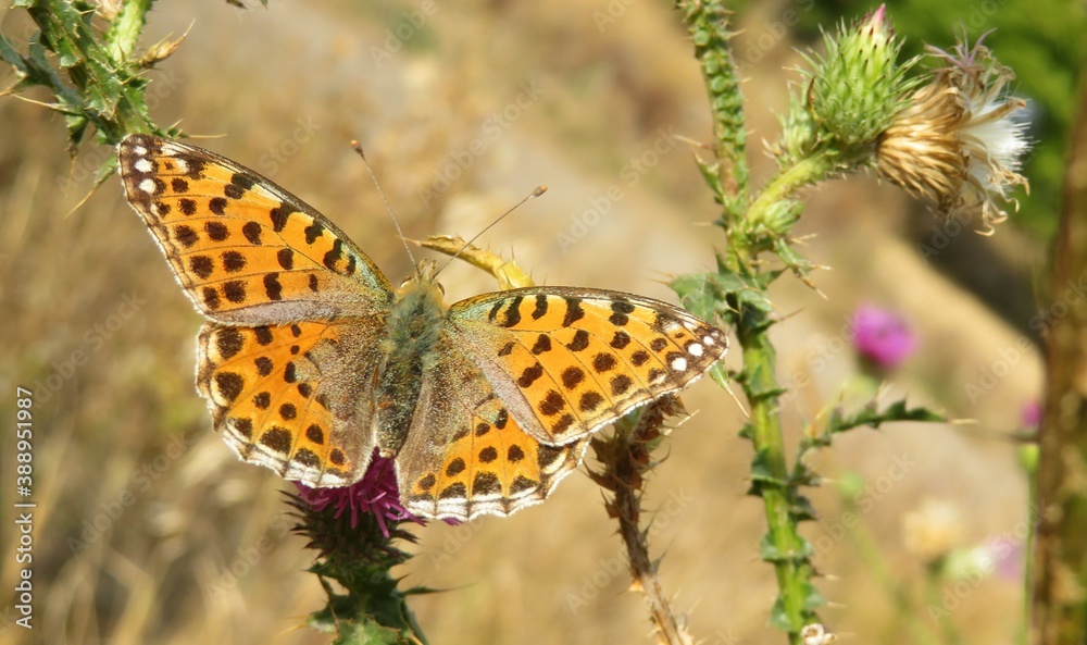 Fotografija Beautiful Silver-washed fritillary butterfly (Argynnis paphia) on thistle flower