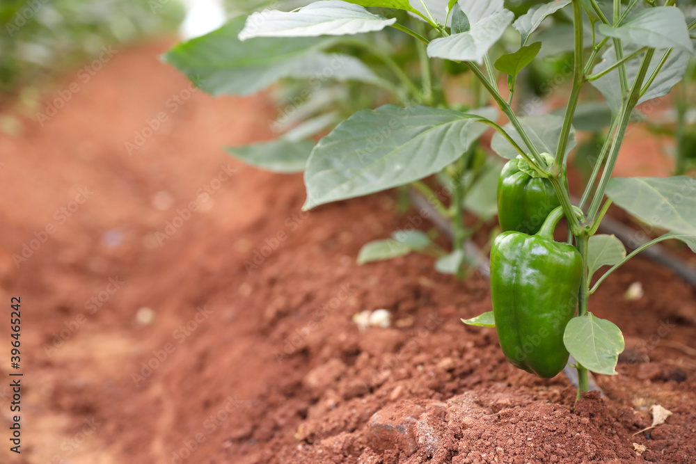 Fotografija fresh capsicum or Green bell pepper plant growing in organic vegetable garden