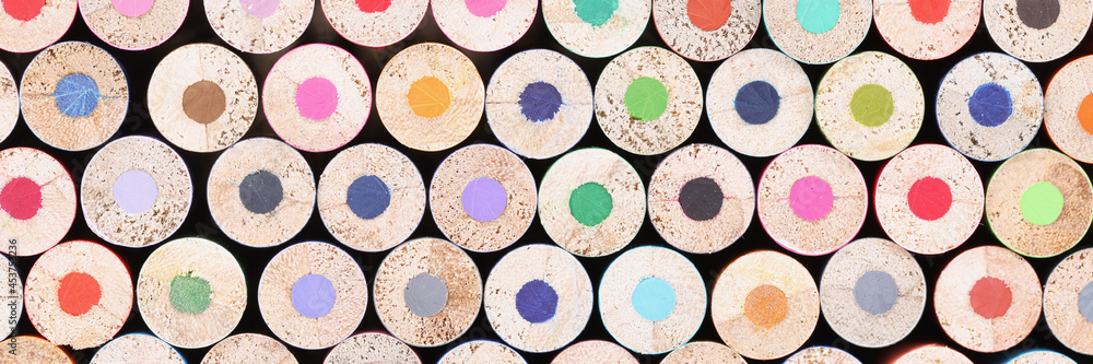 Fotografija Closeup of many unsharpened multicolored wooden pencils background