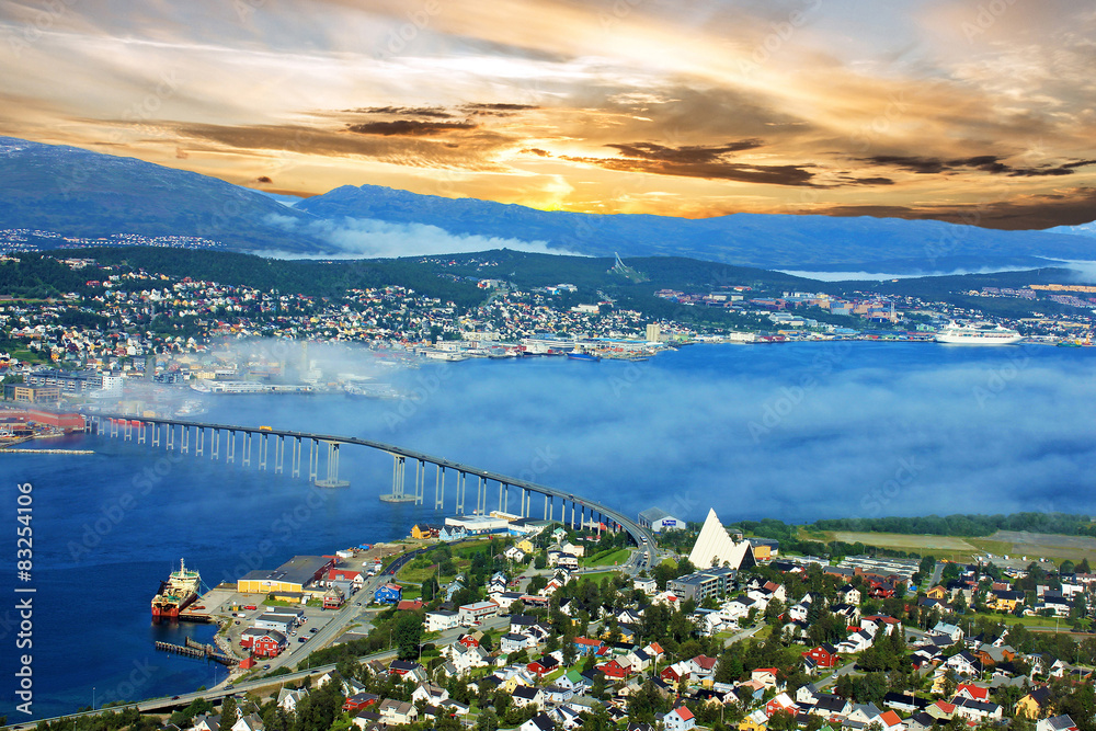 Fotografija Tromso, Norway sunset view, mountains in Norwegian fjords