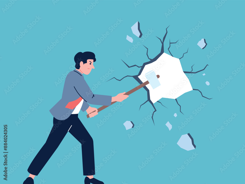 Fotografija Man hammering wall