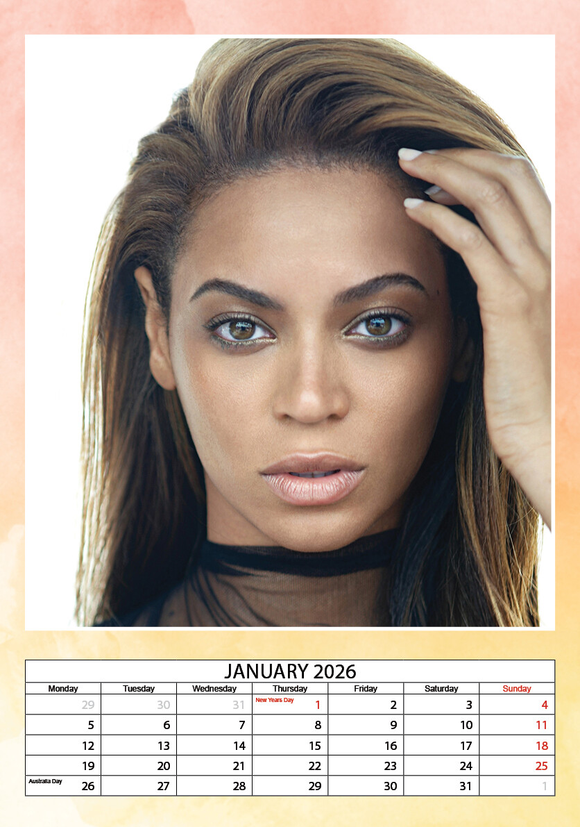 • Kalendar Beyonce možete objesiti na bilo koji zid