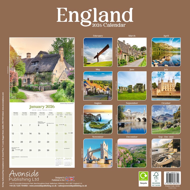 • Kalendar je na engleskom, stoga sadrži samo engleske praznike