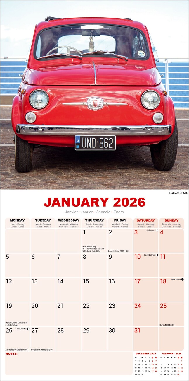 Kalendar 2026 Fiat 500