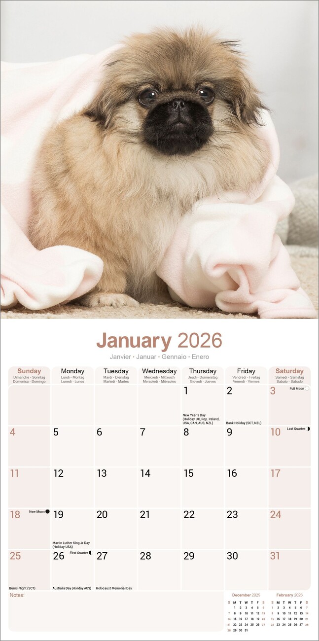 Kalendar 2026 Pekingese