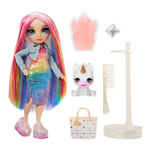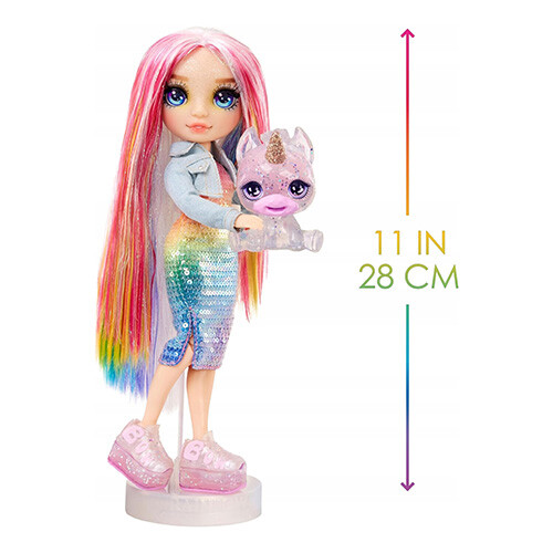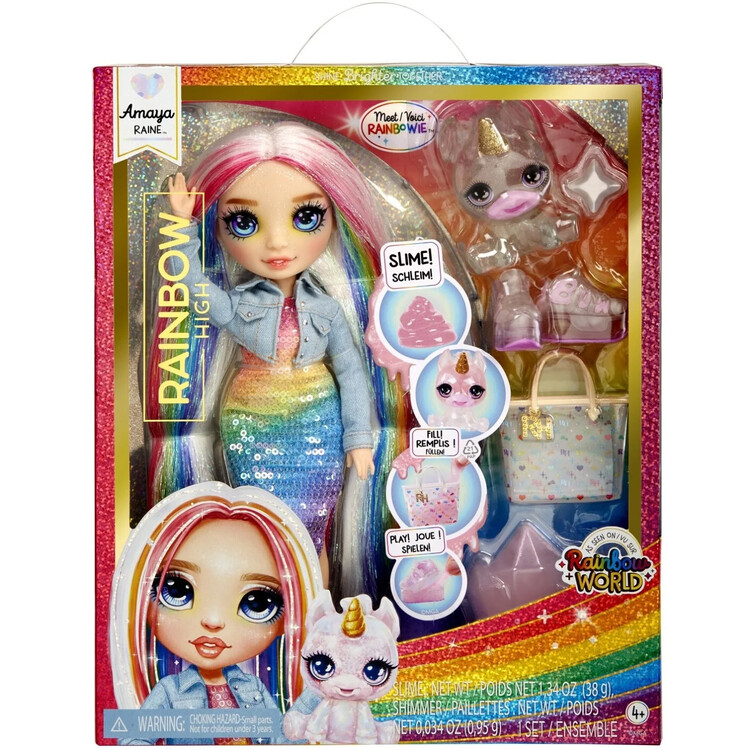 Interaktivna lutka Rainbow High Amaya Raine ima svoje modne dodatke i čarobnog ljubimca jednoroga. Veličina lutke je 28 cm.