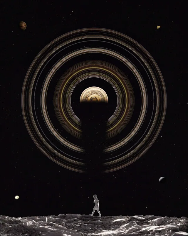 Slika na platnu Saturn Circles and Astronaut on moon
