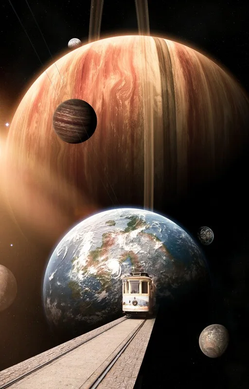 Naljepnica The tramway from Earth to the other planets