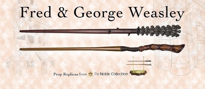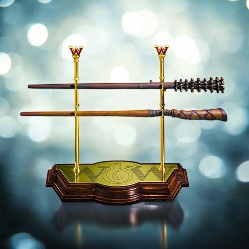 Prekrasan set štapića Freda i Georgea Weasleya. Štapići su izrađeni od visokokvalitetne poli smole, ručno oslikani i postavljeni na elegantan stalak od lijevanog metala i drva.