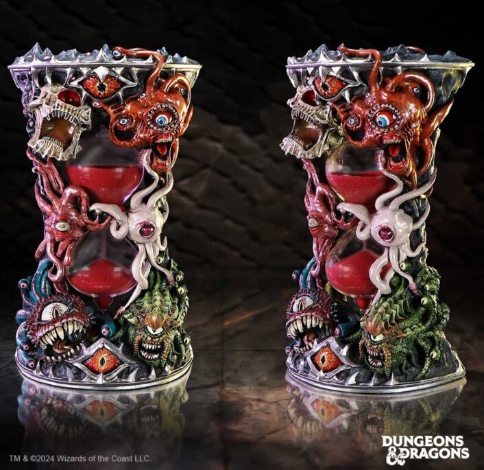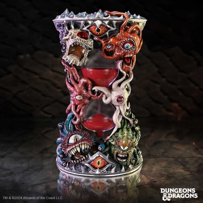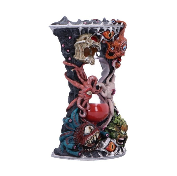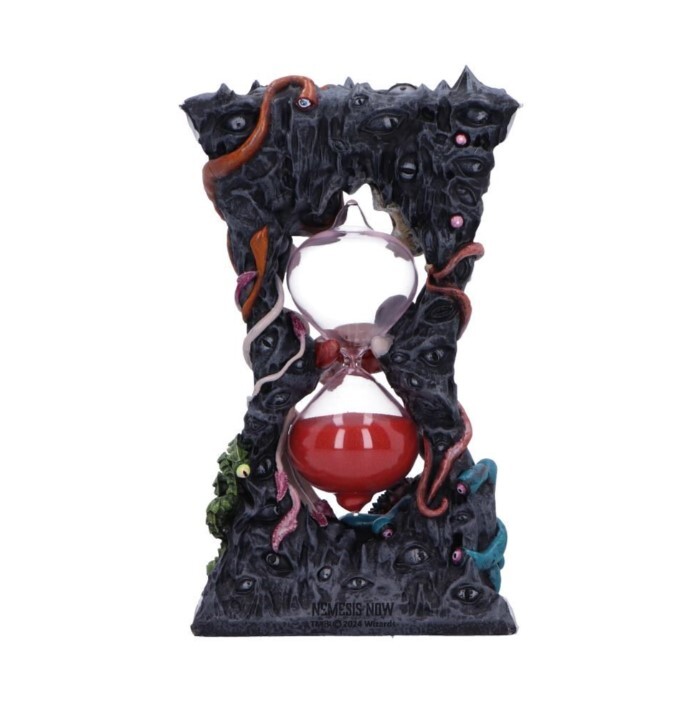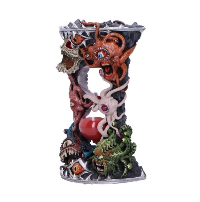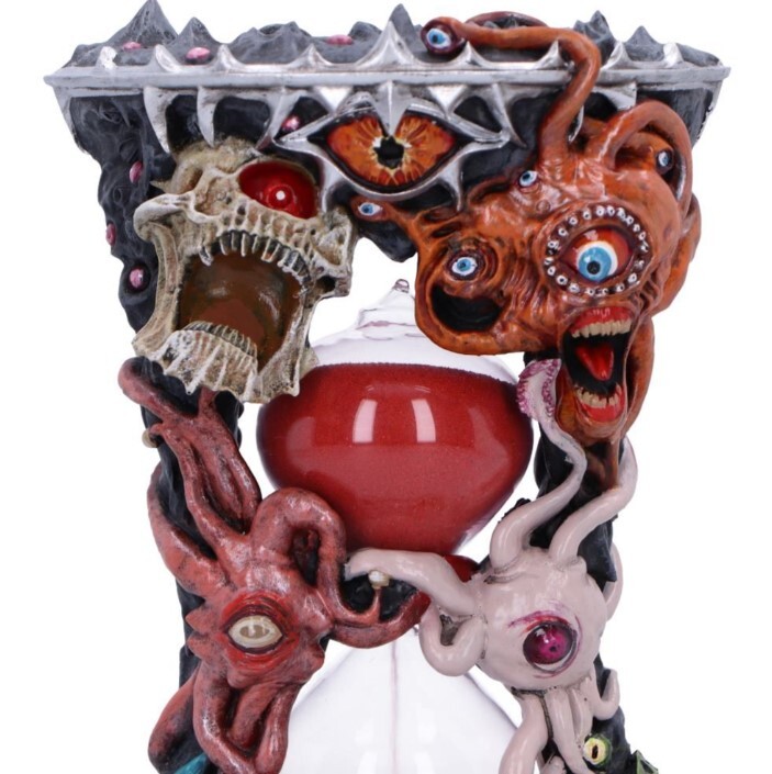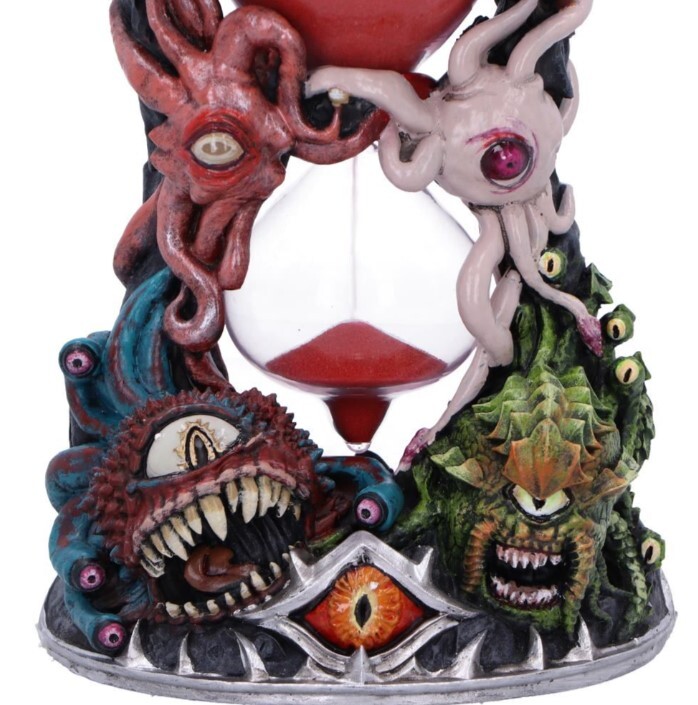 Službena Beholder pješčana ura, ručno oslikana, s centralnom staklenom komorom i crvenim pijeskom koji mjeri točno jednu minutu. Upečatljivi detalii očiju, žila i očnjaka za vaš stol.