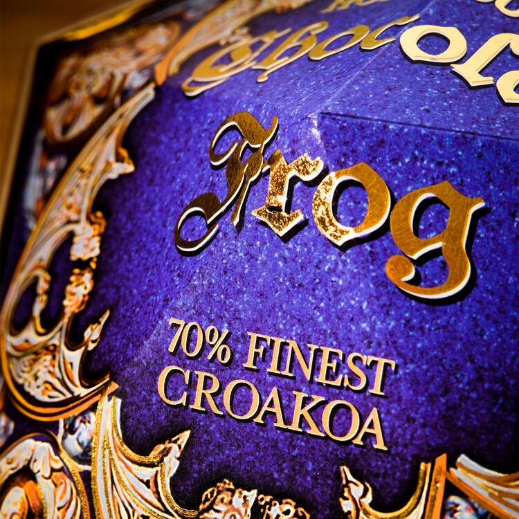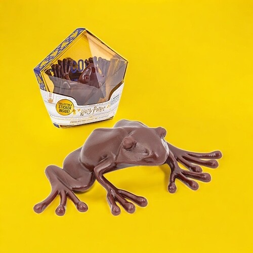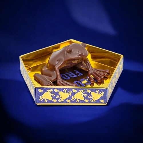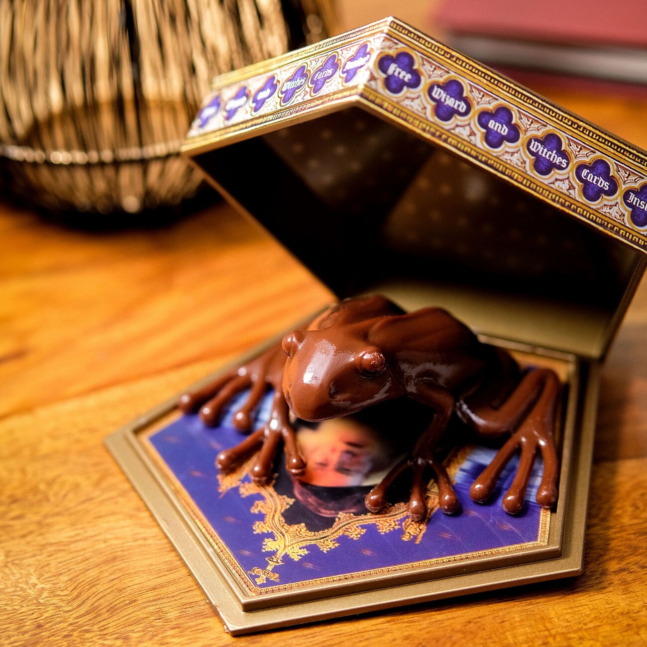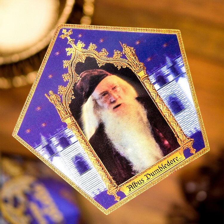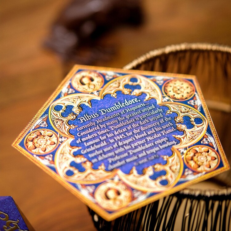 Ova prekrasna replika pakiranja čokoladne žabe Harry Potter sadrži kutiju, karticu Albusa Dumbledorea i čokoladnu žabu koja se može savijati. Kutija je dimenzija 12x12x2,5 cm, a kartica 11x10 cm.