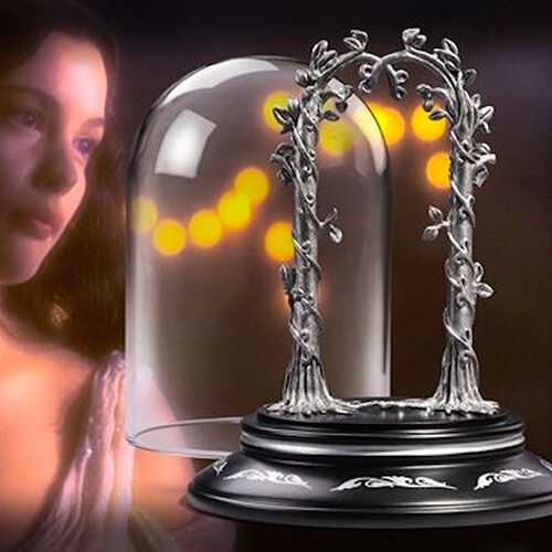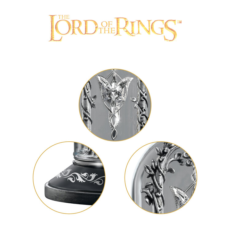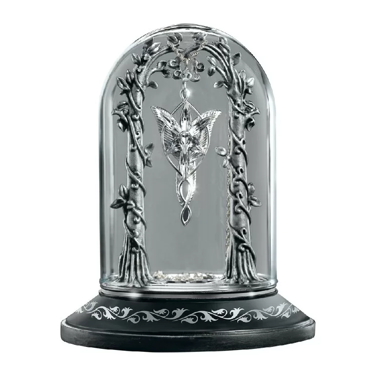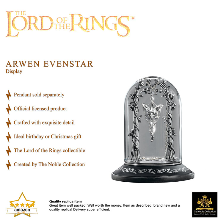 Delikatno izrađen stalak od kositra s drvenom bazom i staklenom kupolom na vrhu, dizajniran za smještaj privjeska Arwen Evenstar (prodaje se zasebno).
