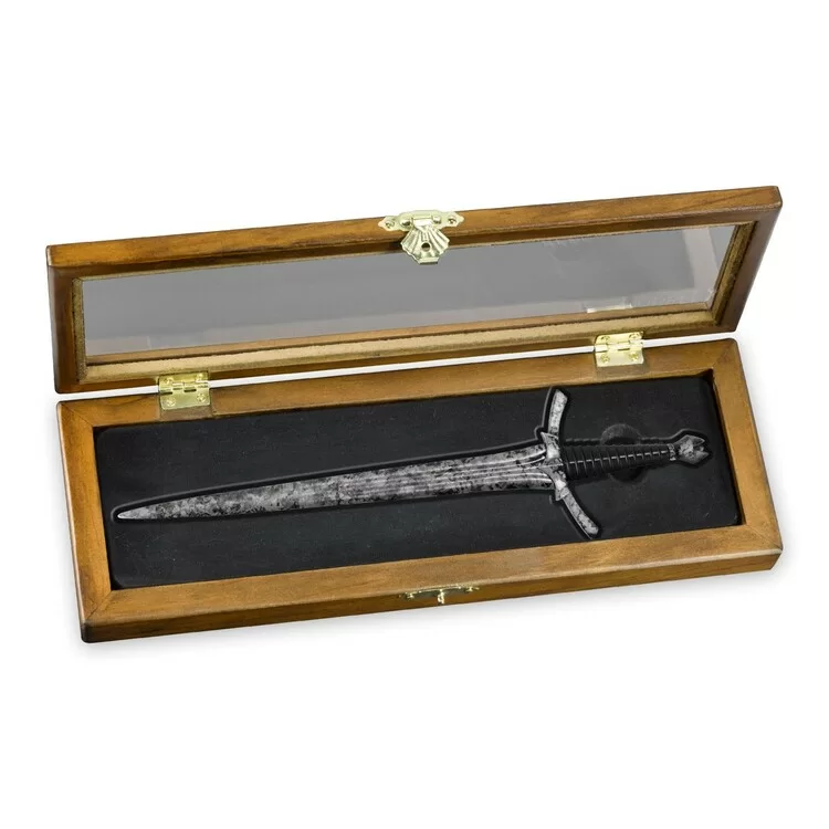 Materials & Craftsmanship The letter opener features a sharp stainless-steel blade and a detailed cast-metal handle that faithfully replicates the design of the Morgul Blade from the films. The entire piece is housed in a wooden presentation box, adding both an exclusive look and a practical storage solution.
