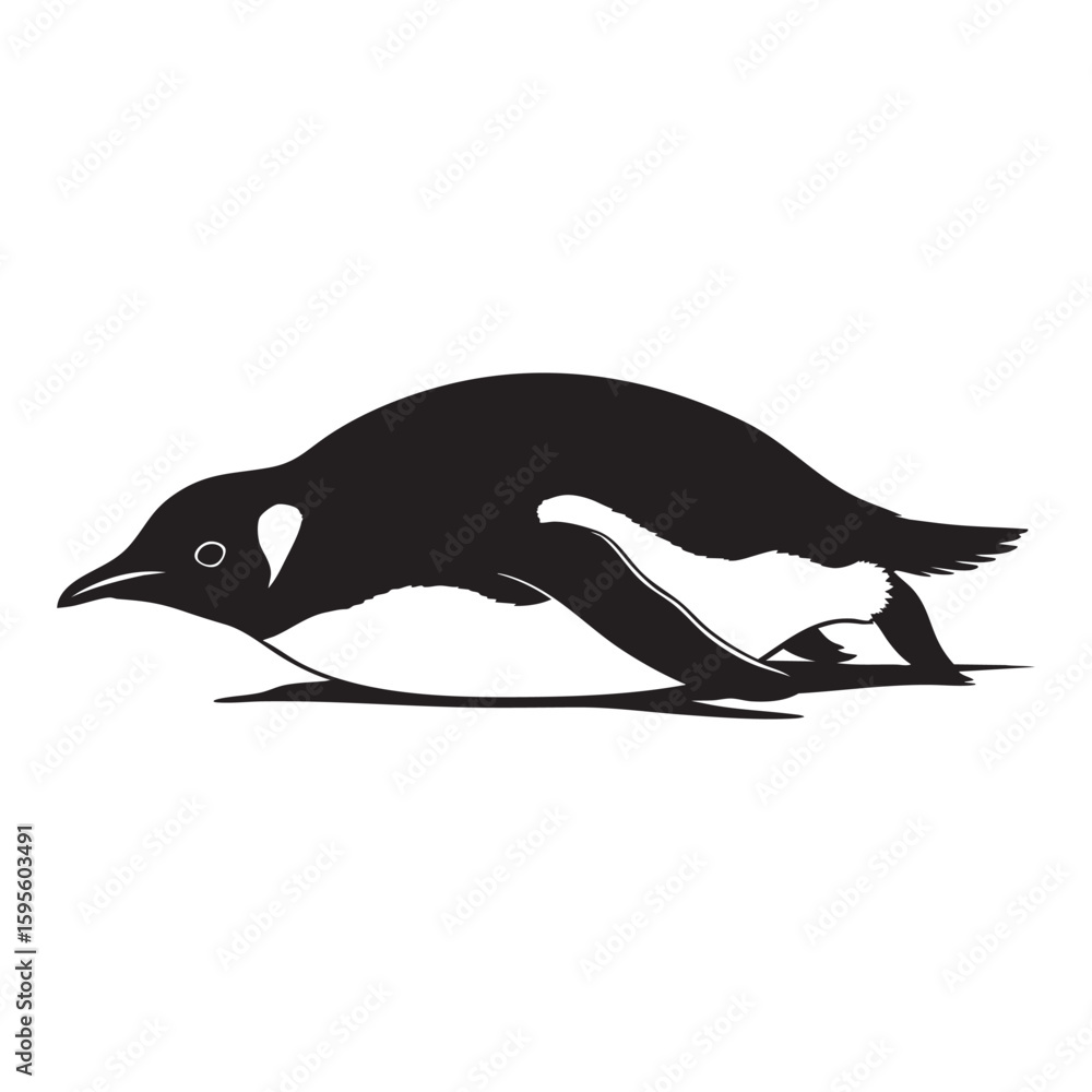 Naljepnica A joyful penguin tobogganing through the snow in Antarctica