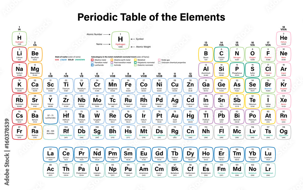Naljepnica Periodic Table of the Elements Vector Illustration including 2016 the four new e