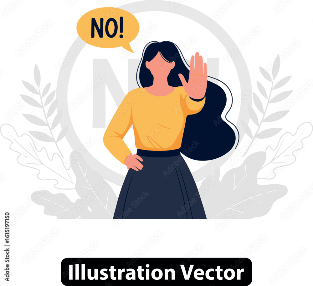 Naljepnica Confident woman showing a stop hand sign and saying no, a concept of refusal and