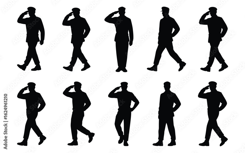 Naljepnica Vector art of silhouette of military man saluting isolated on white background,