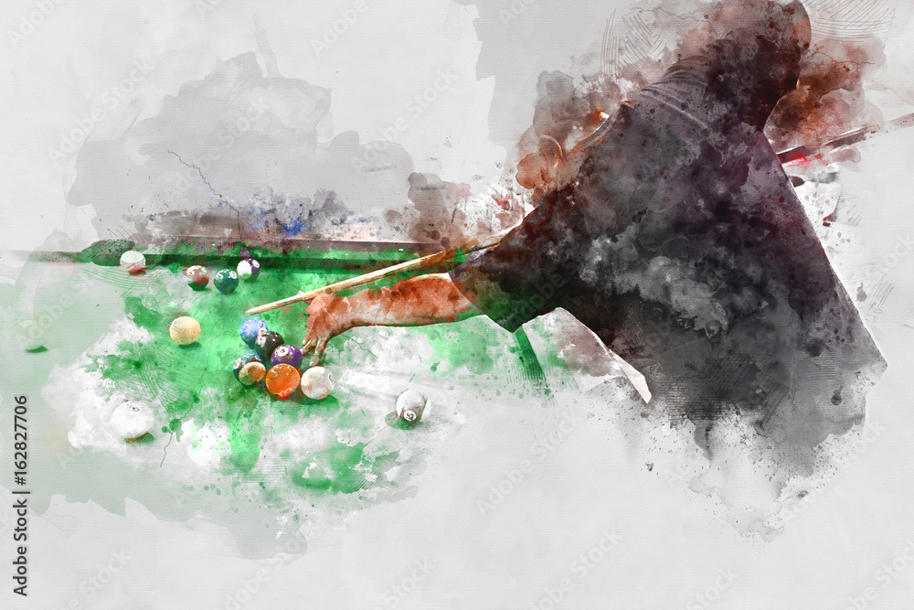 Naljepnica Abstract playing pool, man playing snooker ball on watercolor background