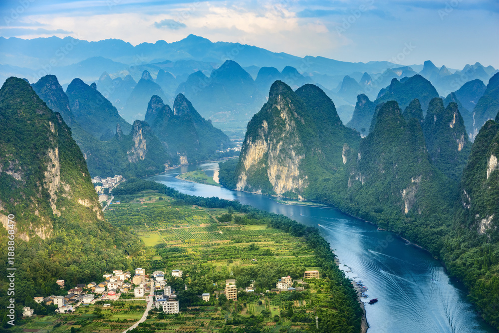 Naljepnica Landscape of Guilin, Li River and Karst mountains