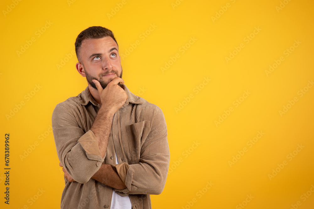 Naljepnica Focused pensive young caucasian man with beard in casual thinks