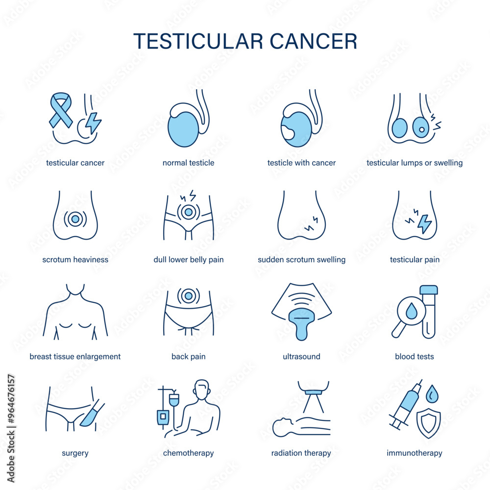 Naljepnica Testicular Cancer symptoms, diagnostic and treatment vector icons
